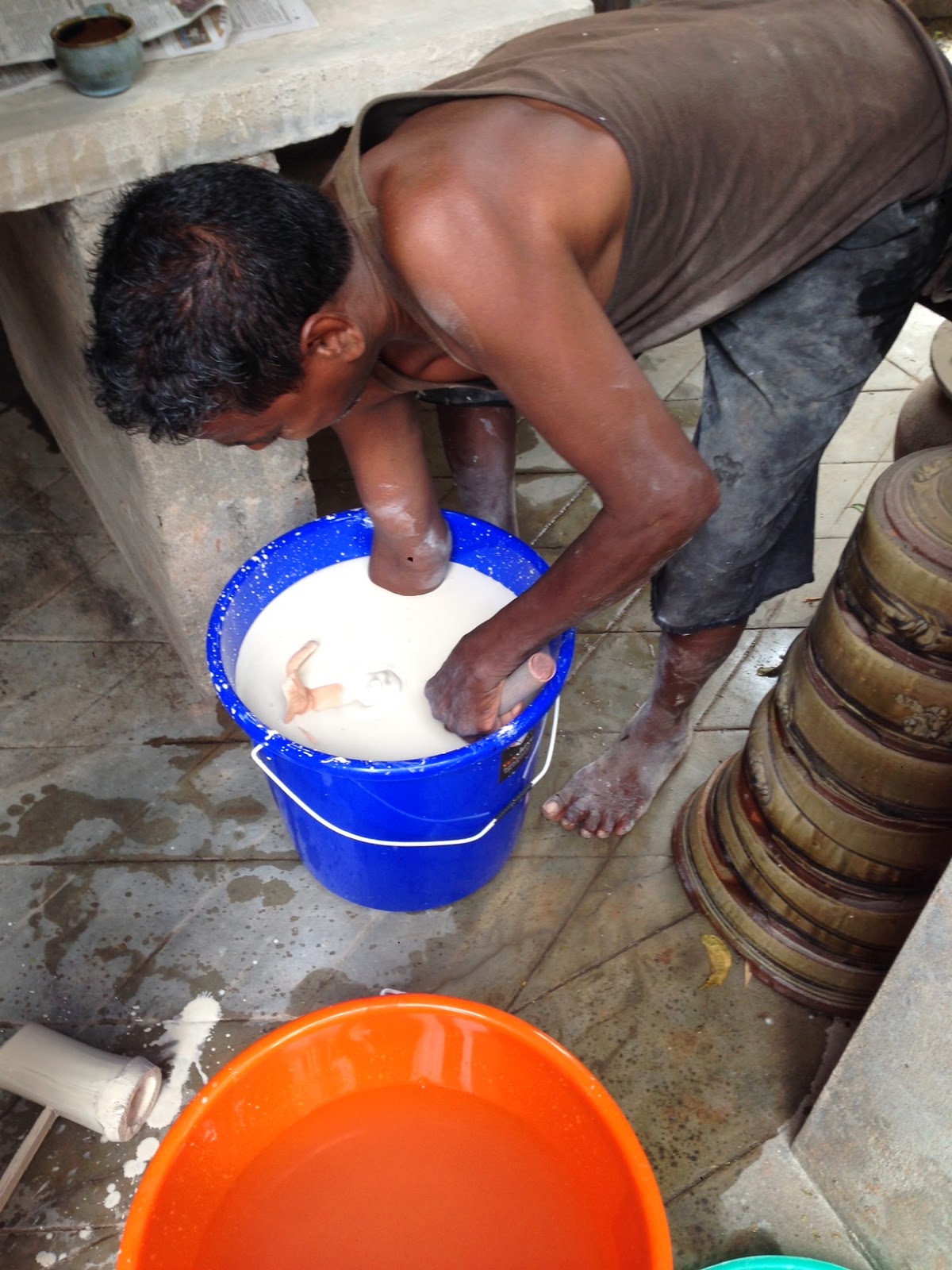 I could only watch (and take pictures) of Ganesha and his bench (rat mobile) got dunked in a large bucket of slip with much more capable hands than mine....